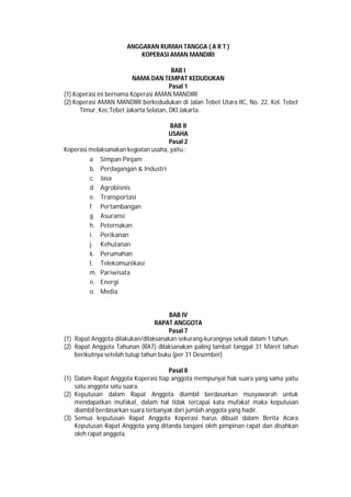 Anggaran Rumah Tangga Koperasi Aman Mandiri